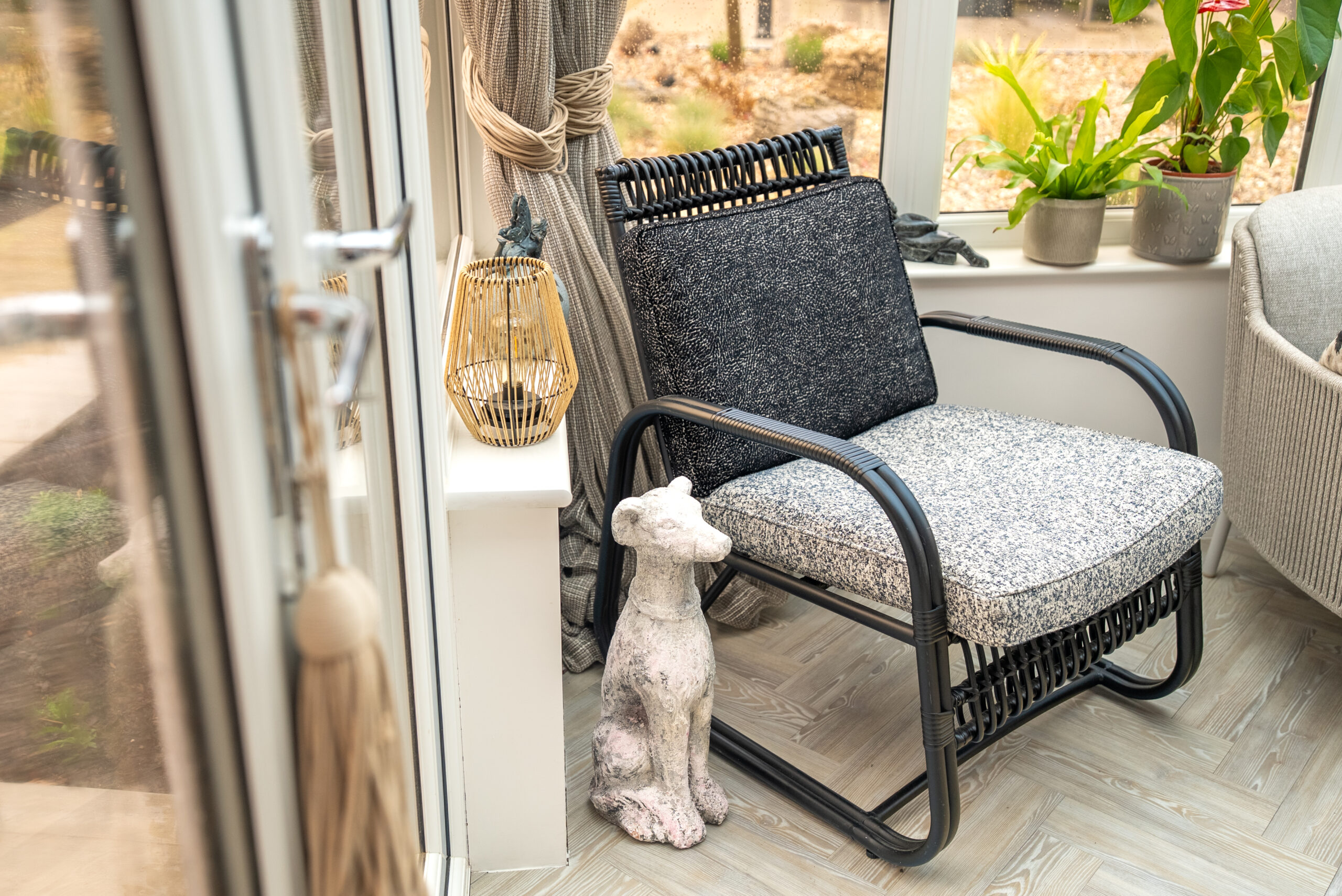 To really finish off the room, add some soft lighting. This can be low standing lamps, wall lights, or even some strings of fairy lights to give the room a cosy atmosphere. Find which lighting options suit your conservatory interior in our lighting guide.