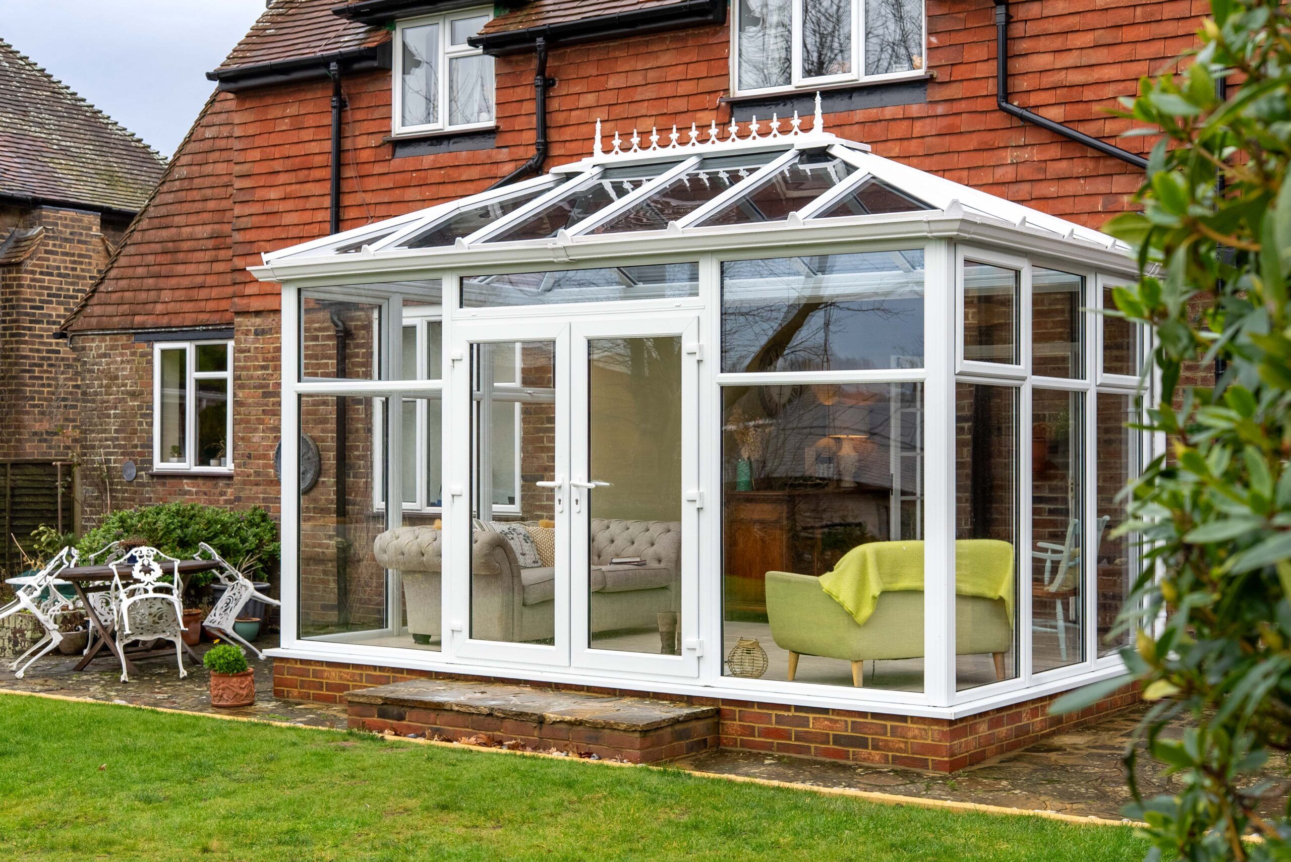 An Edwardian-style roof was chosen to create a more open and usable layout, particularly for seating. Careful consideration was also given to how the new conservatory would connect with the existing brickwork, helping it sit naturally alongside the rest of the home.